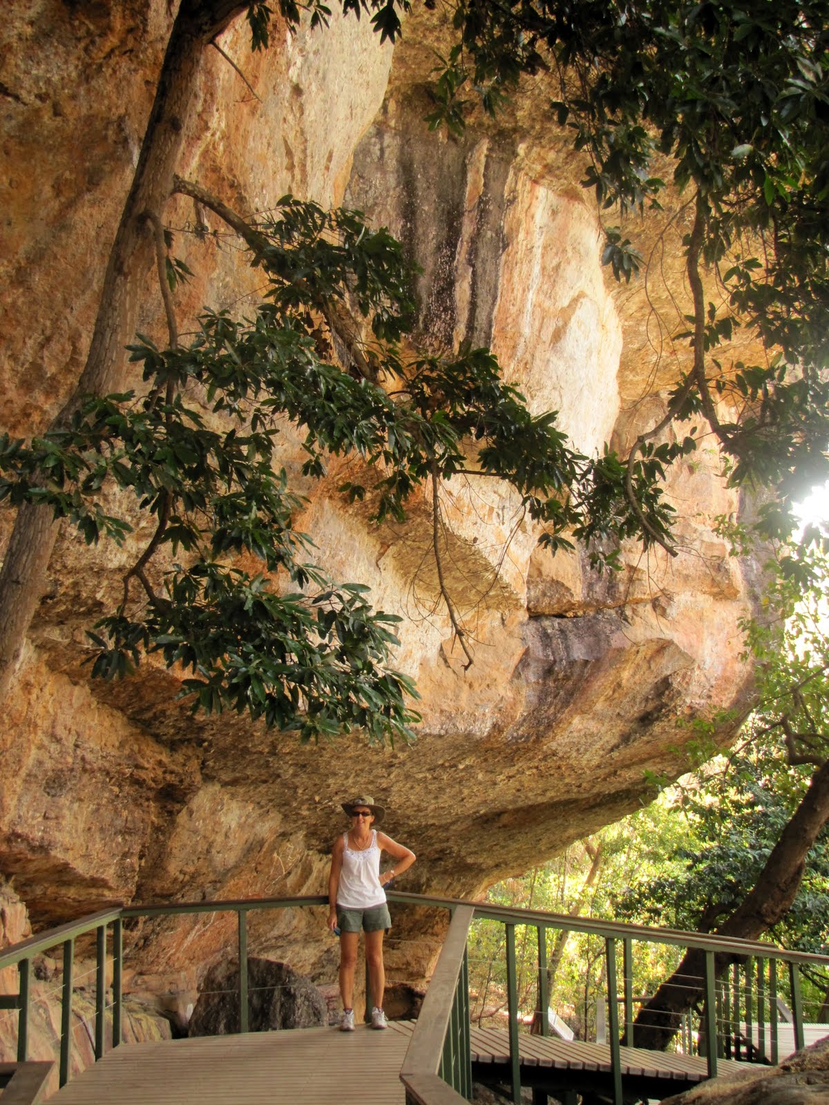 Friday morning the Ransleys and the Bewells drove out to the Nourlangie Rock area. We did a 1.5km walk around the various Aboriginal Art Sites there and the Lookout. The artwork had been repainted and was clearer than some that we had seen at Ubirr. That being said it still isn't our cup of tea. As Sandra says much of it looks like it could have been done by a preschooler. Probably not politically correct but that's just our opinion. We enjoyed the walk and the lookout.